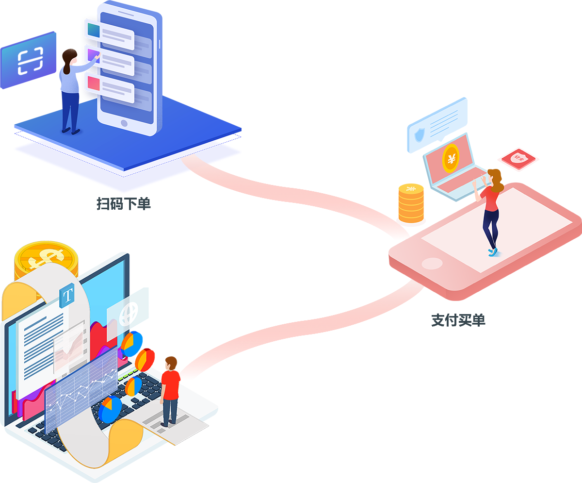 顾客只需扫码点餐,并线上支付,无需服务员,节省商家经营成本,提升餐厅就餐效率。