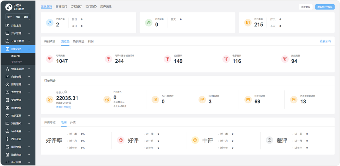 专业后台 · 店铺收益 · 用户流量 · 数据总览